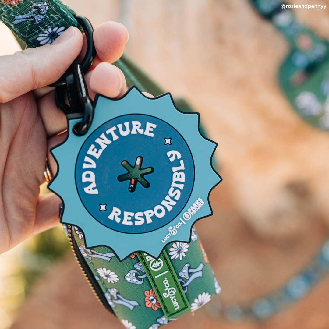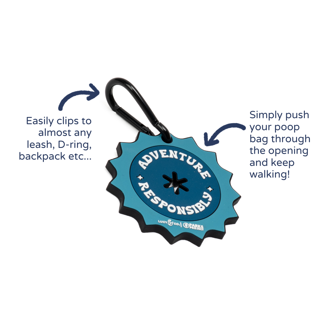 We're working to leave our parks better than we found them, by cleaning up after our furry BFFs! Our new Adventure Responsibly Lucy & Co. x Parks Project Poop Clips hook right onto your leash and holds your used bags like a pro! Made from thick, durable rubber, it keeps your hands free and clean. Featuring a premium metal carabiner, this clip is easy to use with nearly any leash, d-ring, backpack, etc...Say goodbye to awkward poo-carrying and hello to easy breezy strolls with your pup!