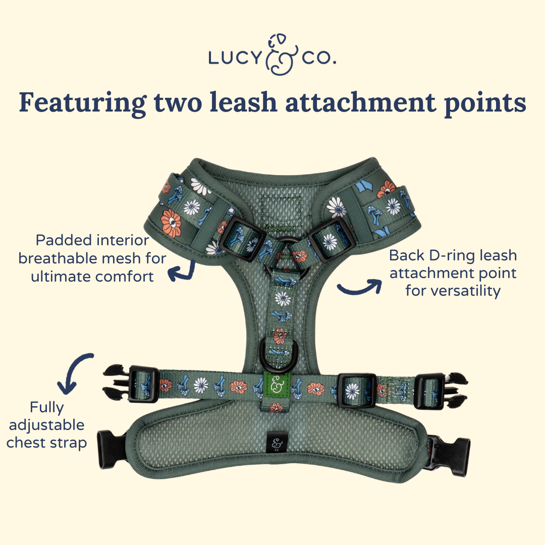 Not sure what size to order? Shoot us a note. Or are you not sure which Lucy & Co. Harness makes sense for your pup? Check out our blog!