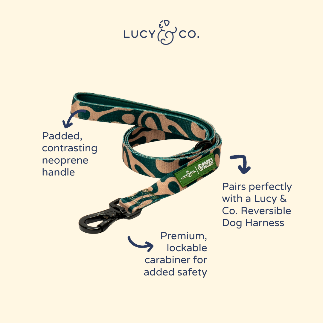 This Geyser print leash pairs perfectly with the matching Geyser No-Pull Harness and walk set, but is bold enough to be used on its own. Get a grip and lock it in: featuring a padded neoprene handle for comfort and premium lockable carabiner for added safety.