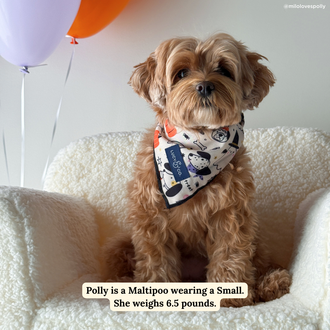 The perfect fit for Howloween night! Tie on the Howloween Dog Bandana to scout out your dog's next adventure or roll it into a kerchief for some fashionable pizazz around town, or cozy up and chill out!