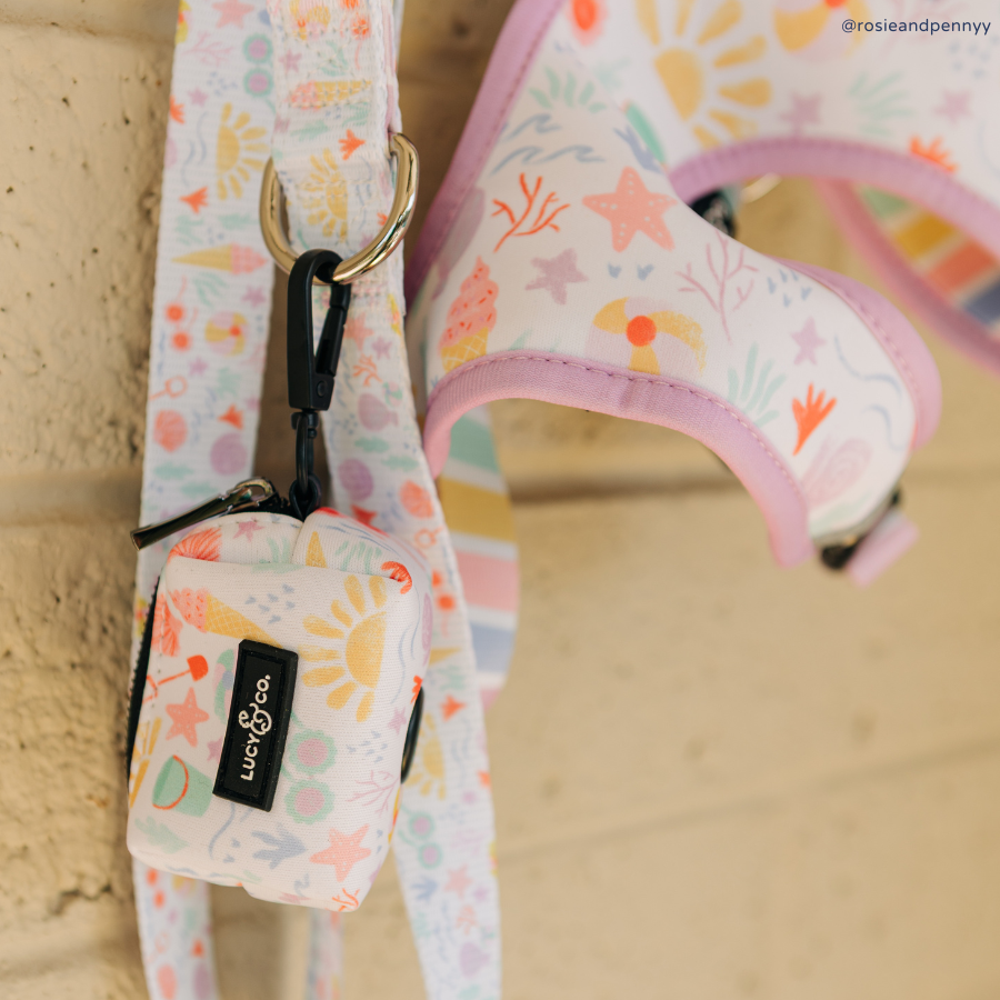 Well...sometimes life's a beach! This print leash pairs perfectly with the matching Reversible Harness and walk set, but is bold enough to be used on its own. Get a grip and lock it in: featuring a padded neoprene handle for comfort and premium lockable carabiner for added safety.