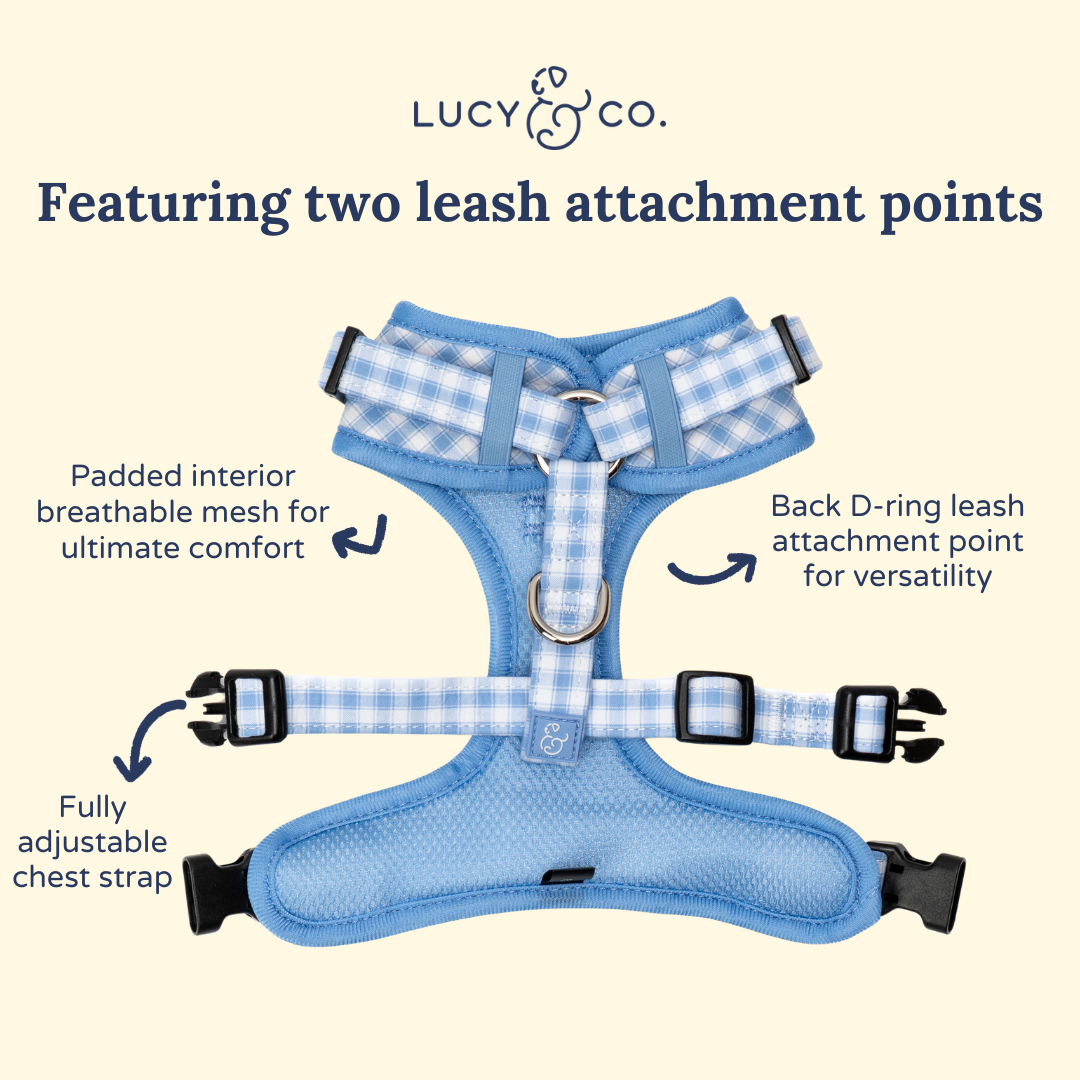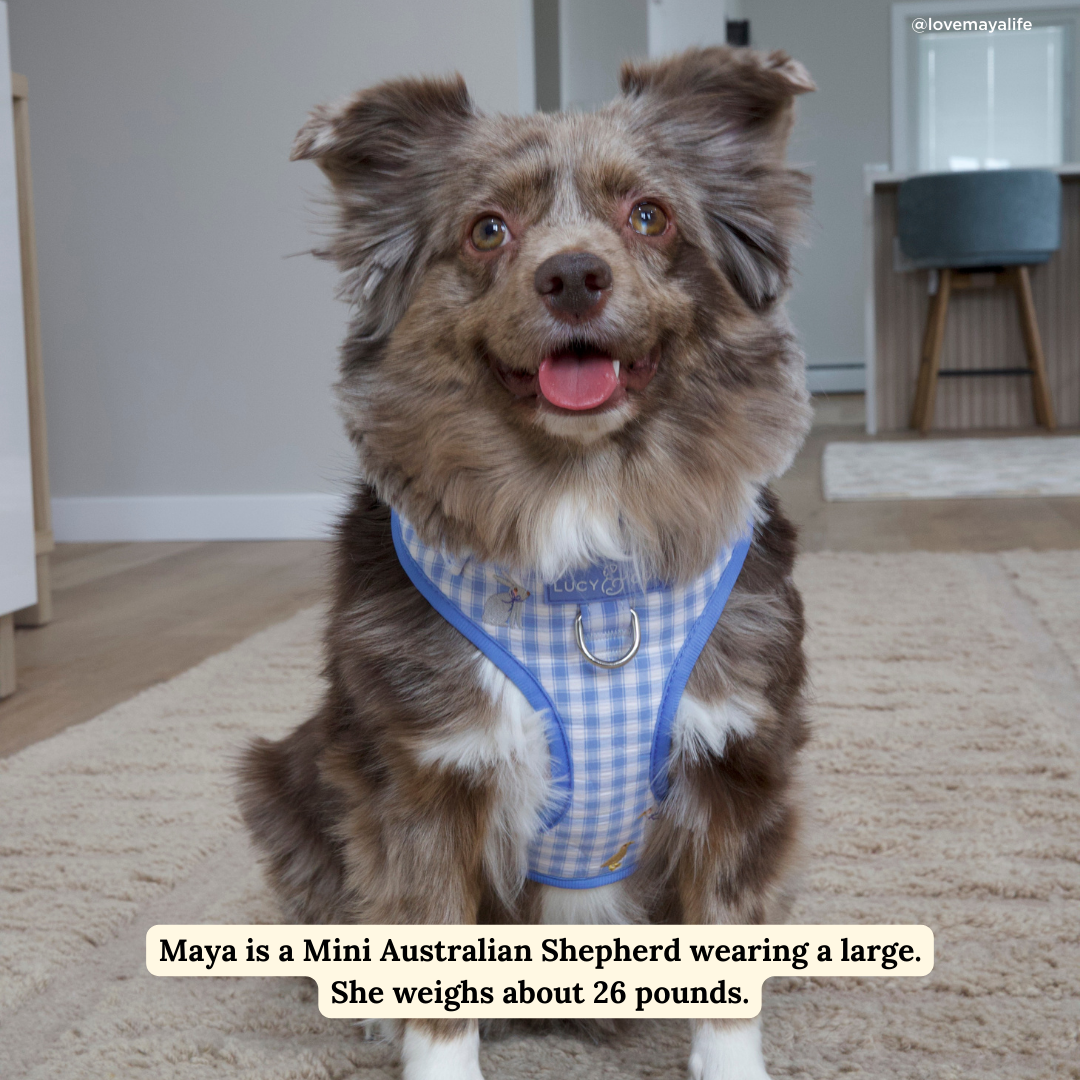 Not sure what size to order? Shoot us a note. Or are you not sure which Lucy & Co. Harness makes sense for your pup? Check out our blog!