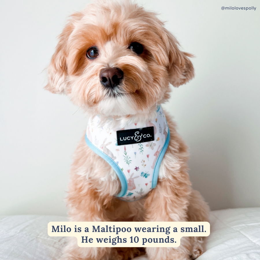 This harness is a favorite for both me and my pups! It easily slips over their head and buckles on both sides, which makes getting ready for walks quick. The fabric is soft and comfortable, and the reversible pattern is such a fun bonus! We love the two adorable looks in one.