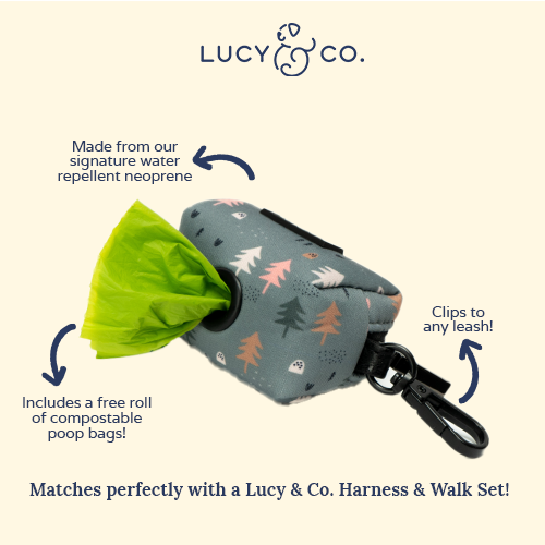 Let's take a hike! Does your dog walk around like they think they're the sh*t?! Finally a poop bag holder of equal swag. Sh*t happens and now it happens in our favorite prints and patterns. Made from Lucy & Co.'s signature neoprene, you can match your poop bag holder to your dog's walk set, yet it's durable (and stylish) enough to stand alone.